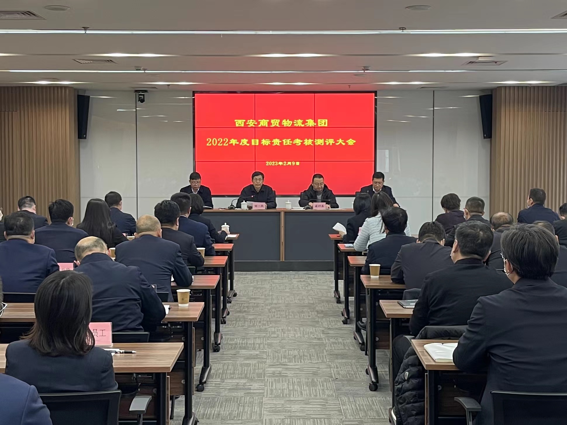 按照全市目標(biāo)責(zé)任年終考核工作部署,2月9日下午,西安商貿(mào)物流集團(tuán)召開2022年度目標(biāo)責(zé)任考核測評大會,市第十考核組組長、市國資委黨委書記、主任劉三民一行10人蒞臨。會議由黨委書記、董事長曹兆民主持,集團(tuán)領(lǐng)導(dǎo)班子,總部全體干部員工,各單位黨政主要負(fù)責(zé)同志及職工代表共50余人參加。