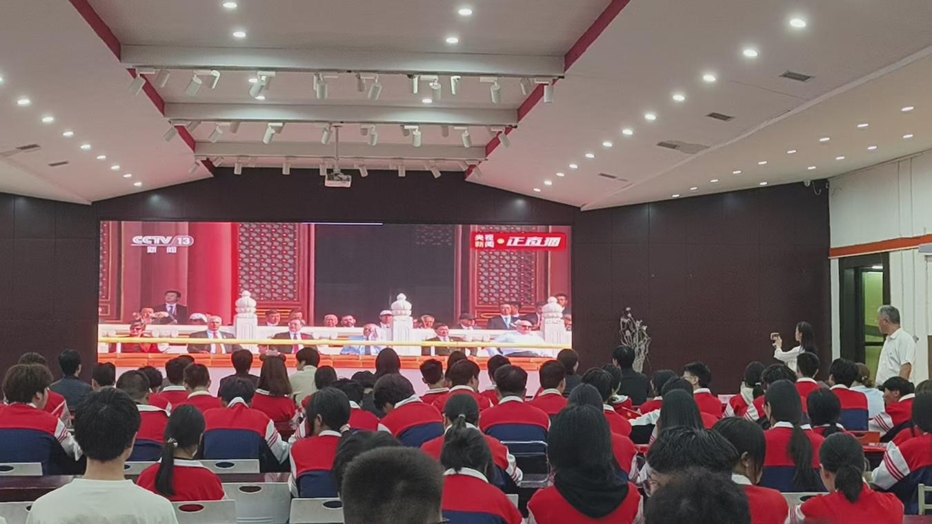 9月3日,物資職校200余名師生代表集中收看紀(jì)念大會實(shí)況直播,銘記歷史、緬懷先烈。習(xí)近平總書記的重要講話令學(xué)生備受鼓舞,增強(qiáng)了師生的民族自豪感與集體凝聚力,讓大家更清晰認(rèn)識到自身責(zé)任與使命。全體教師熱情高昂的表示將傳承弘揚(yáng)愛國主義精神,把抗戰(zhàn)精神融入課堂,牢記育人使命,為強(qiáng)國建設(shè)、民族復(fù)興作貢獻(xiàn)。廣大學(xué)生激情澎湃的表達(dá),將以先輩為榜樣,刻苦學(xué)習(xí)、堅(jiān)定信念,努力成長為擔(dān)當(dāng)民族復(fù)興大任的時(shí)代新人。