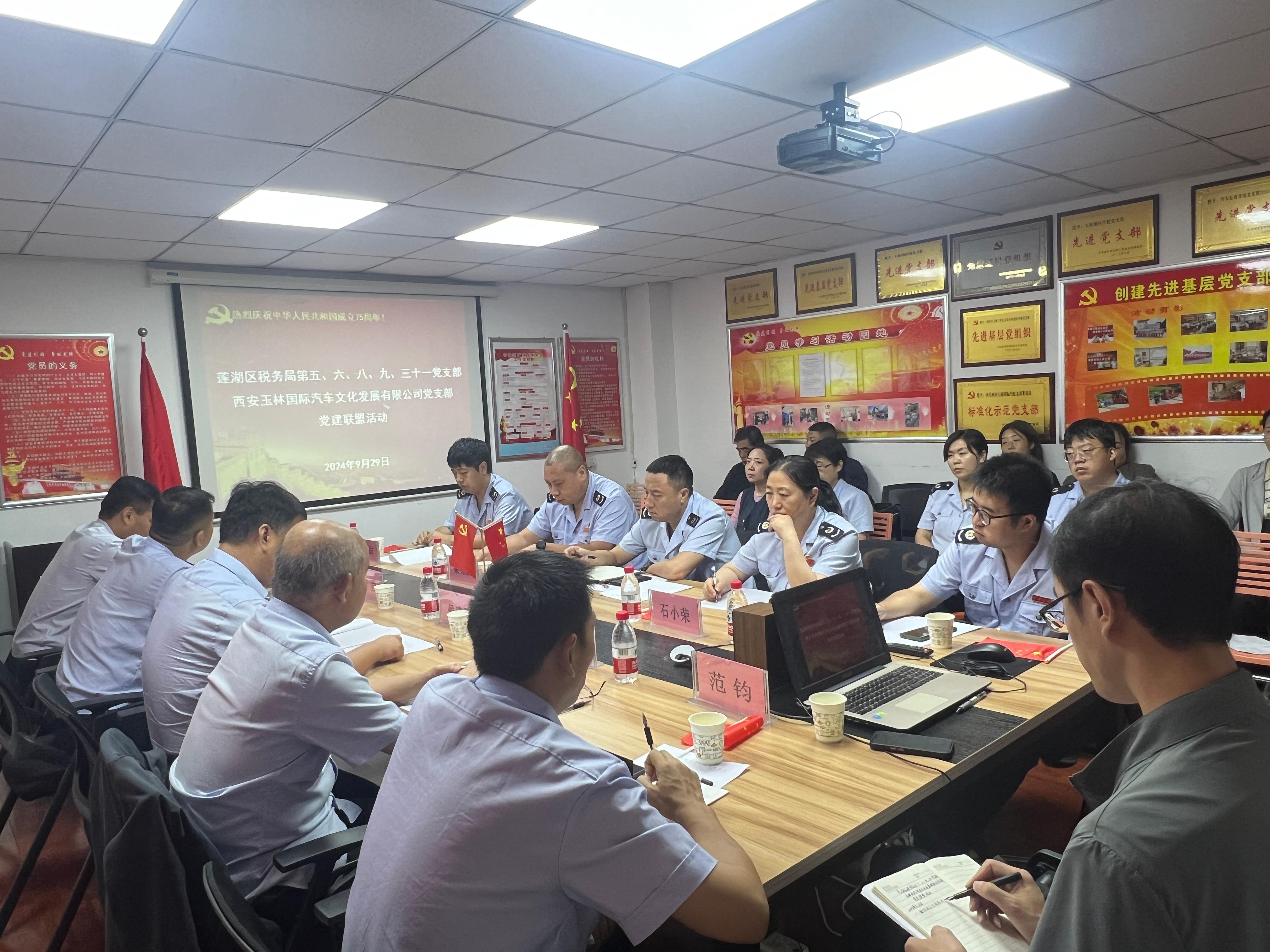 為全面貫徹落實(shí)習(xí)近平新時(shí)代中國特色社會(huì)主義思想和黨的二十屆三中全會(huì)精神,推動(dòng)黨紀(jì)學(xué)習(xí)教育常態(tài)化長效化,以新作風(fēng)、新作為、新成績慶祝中華人民共和國成立75周年。9月29日,西安玉林國際汽配黨支部聯(lián)合西安市蓮湖區(qū)稅務(wù)局下屬第五、六、八、九、三十一黨支部圍繞政治建設(shè)、紀(jì)律建設(shè)、業(yè)務(wù)交流、營商環(huán)境提升等內(nèi)容開展稅企黨建聯(lián)盟活動(dòng)。公司黨員代表、環(huán)西稅務(wù)所各支部黨員代表、市場商戶代表共計(jì)20余人參加了此次活動(dòng)。