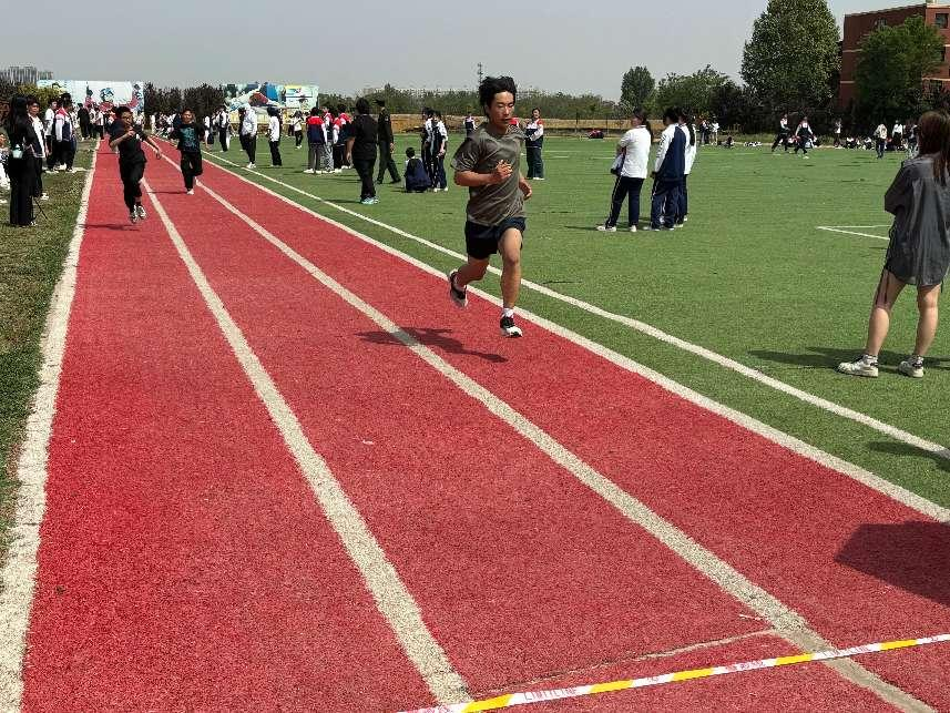 本次運(yùn)動(dòng)會(huì)分別設(shè)置了100米、200米、400米、800米、4×400米接力賽、60米障礙往返跑、跳遠(yuǎn)等比賽項(xiàng)目。隨著發(fā)令槍響,運(yùn)動(dòng)會(huì)各項(xiàng)比賽也緊鑼密鼓地開始了,寧靜的校園頓時(shí)沸騰起來。田徑賽場(chǎng)上,運(yùn)動(dòng)員們?nèi)_刺,100米短跑的最好成績達(dá)到12秒58;跳遠(yuǎn)賽場(chǎng)上,最好成績達(dá)到 2.83米。啦啦隊(duì)加油助威,志愿者貼心服務(wù),廣播站傳遞精彩瞬間,整個(gè)校園沉浸在熱烈的氛圍中。